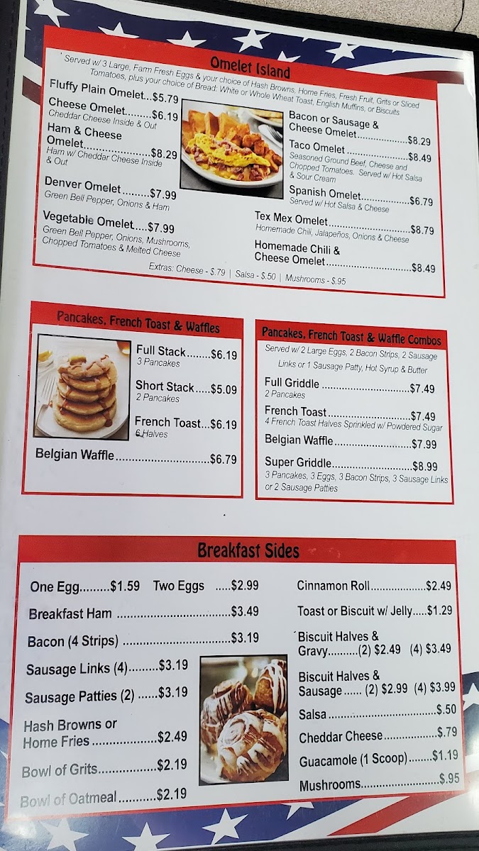 Ham (1) – Choice of egg style such as scrambled, poached, fried, or boiled.